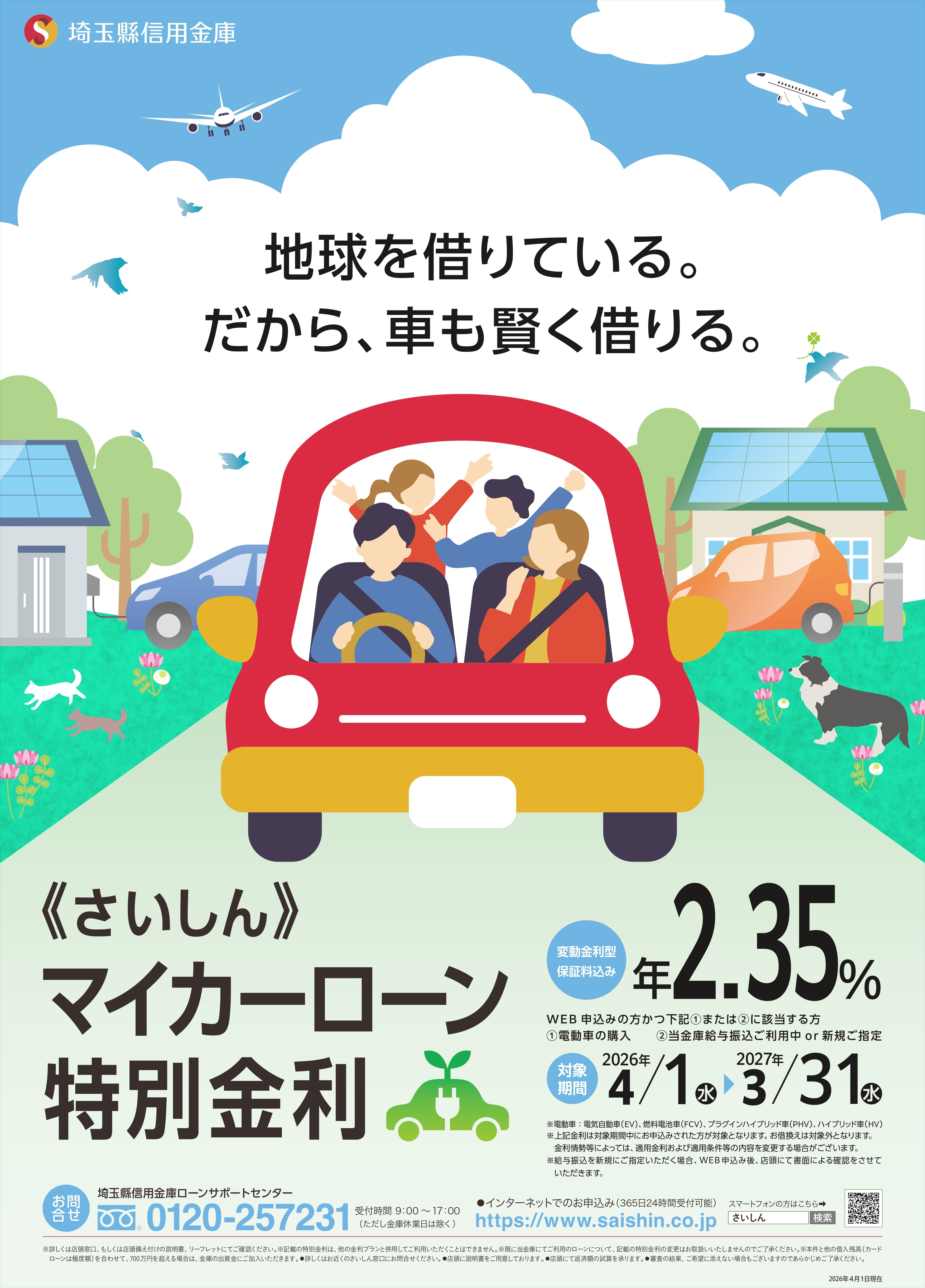 - n3《さいしん》マイカーローン特別金利(受付期間:2027年3月31日まで)