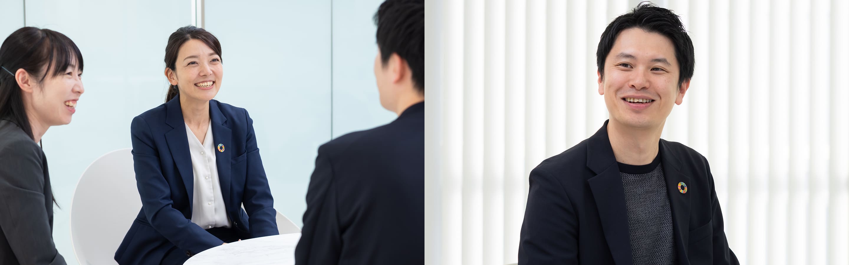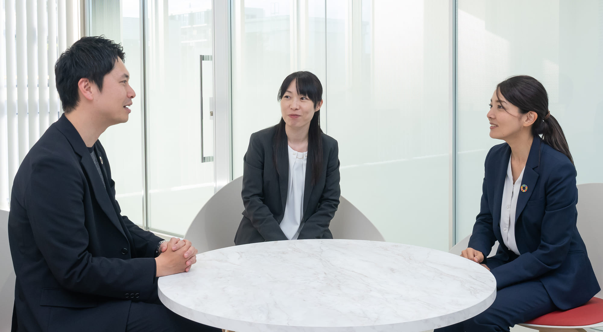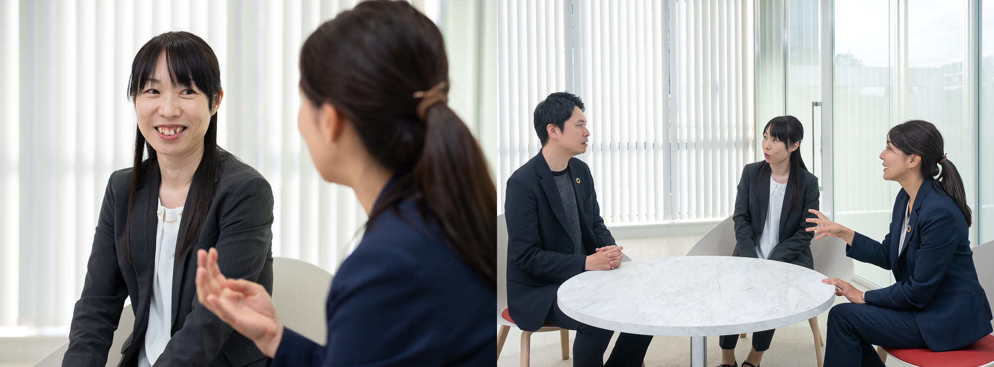 仕事を続けながら出産・育児などのライフイベントを先輩職員たちはどのように乗り越えてきたのか。《さいしん》の出産・育児サポート制度の活用法や周囲とのコミュニケーションの大切さなどについて、本部や営業店で活躍する3名の職員に話し合ってもらいました。